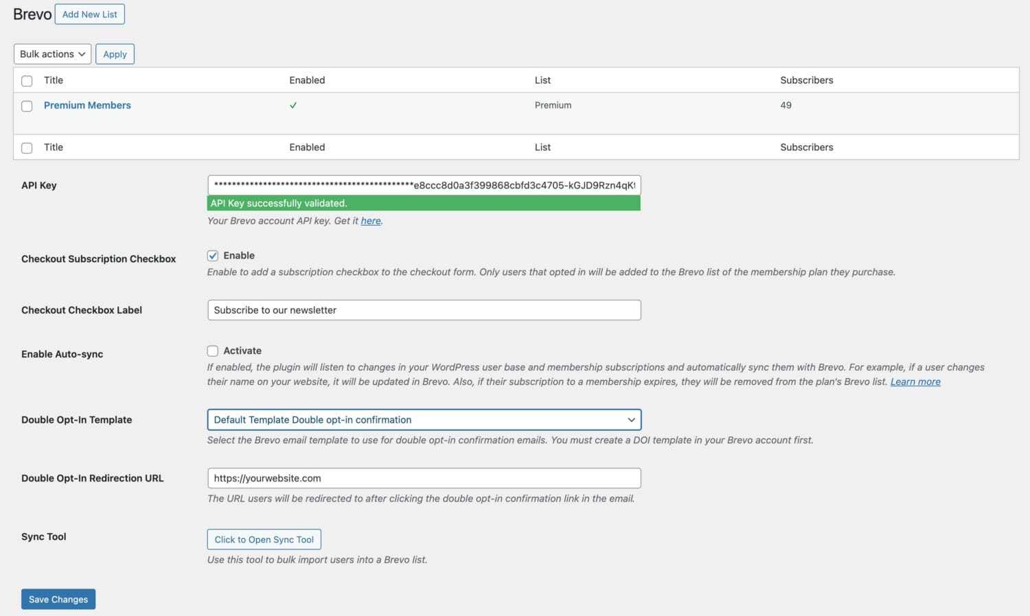The Brevo addon allows you to add WordPress users, members, or customers to specific Brevo groups or lists based on the membership plan they purchase or subscribe to.