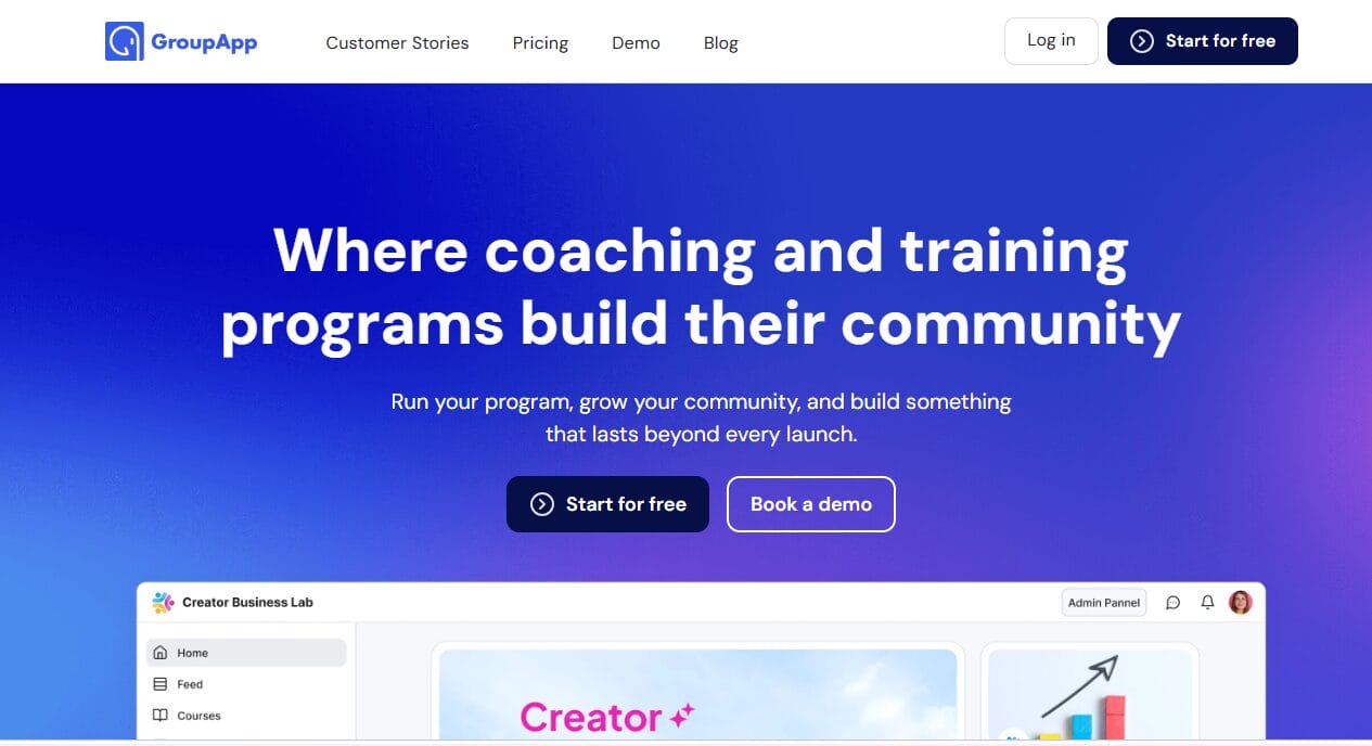 GroupApp is a powerful membership site platform that combines courses and community into a single experience, so members watch lessons, ask questions, and complete assignments without switching tabs. That means higher completion rates for your programs, and since you’re offering real value through learning experiences, members keep coming back.