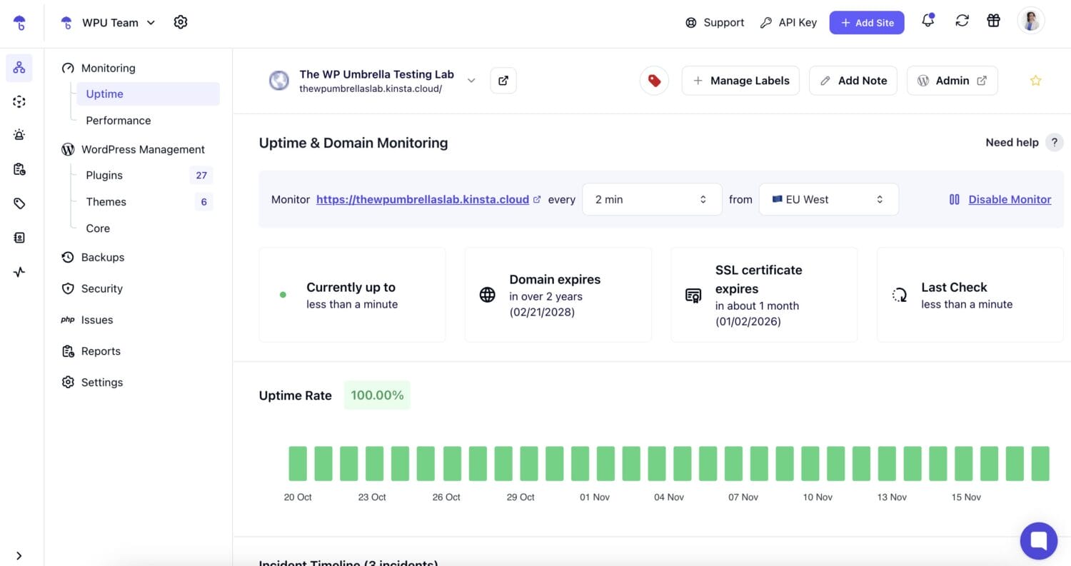 This is where WordPress maintenance platforms like WP Umbrella help. In this article, we’ll show how WP Umbrella gives agencies all the tools they need to run WordPress care plans successfully.