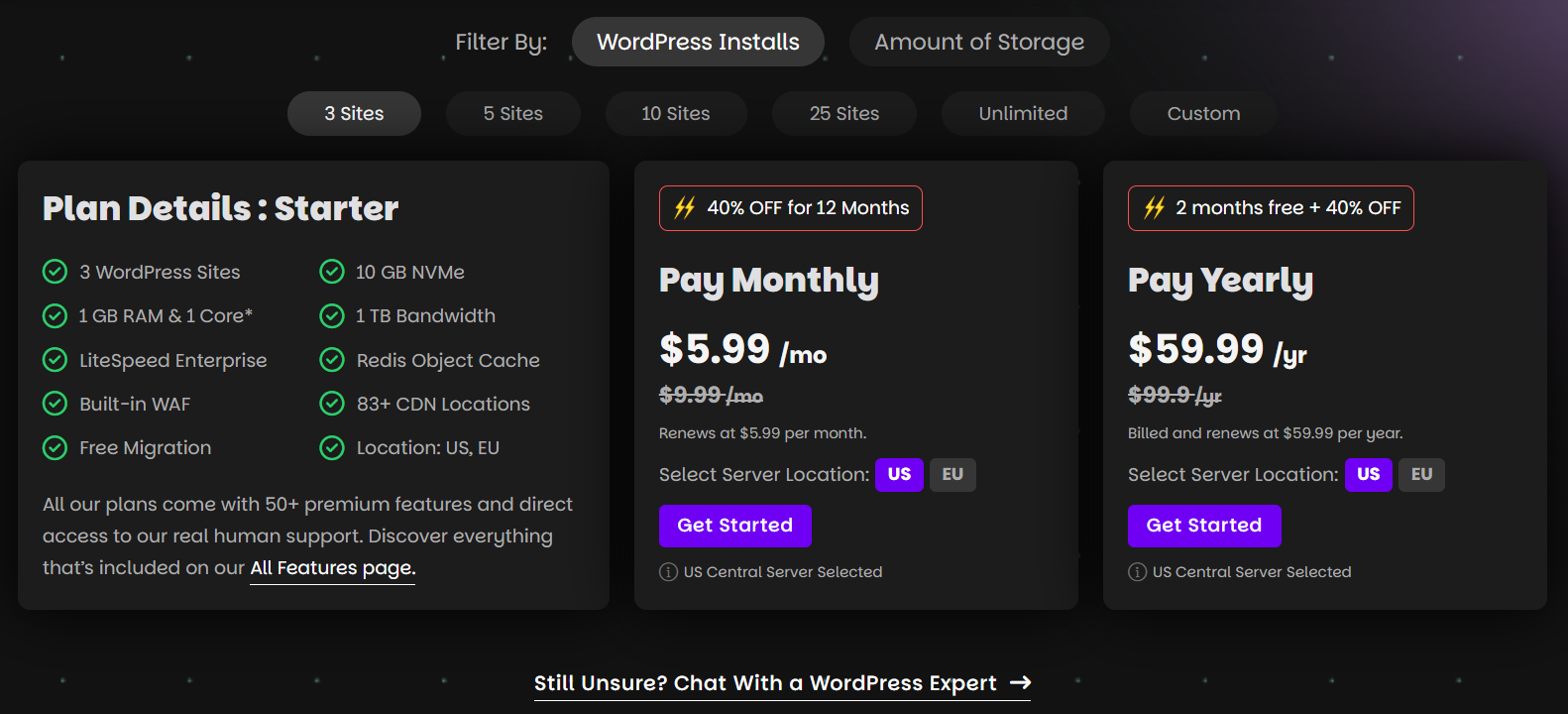 - Storage Limits on Starter Plans: While the price is low, the storage on the lower-tier plans (e.g., 10 GB NVMe) may feel restrictive for large media-heavy sites, requiring users to upgrade to the next tier sooner than just for traffic alone.