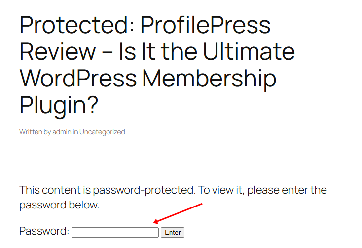 Given these limitations, we recommend using our ProfilePress plugin, which is a better alternative to password-protecting posts, pages, and custom post types in WordPress.