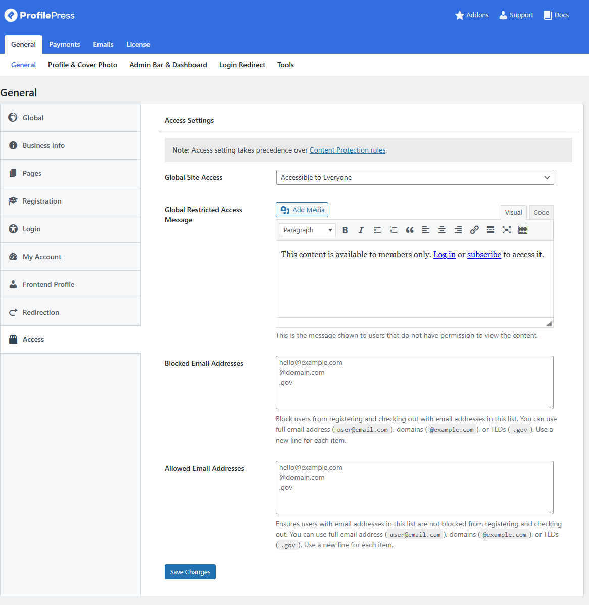 For example, you might want to make your website available only to registered members, create a private client portal, or temporarily prevent public access while your website is still under development. Instead of protecting pages one at a time, ProfilePress includes a feature called Global Site Access that lets you control access to your entire website.
