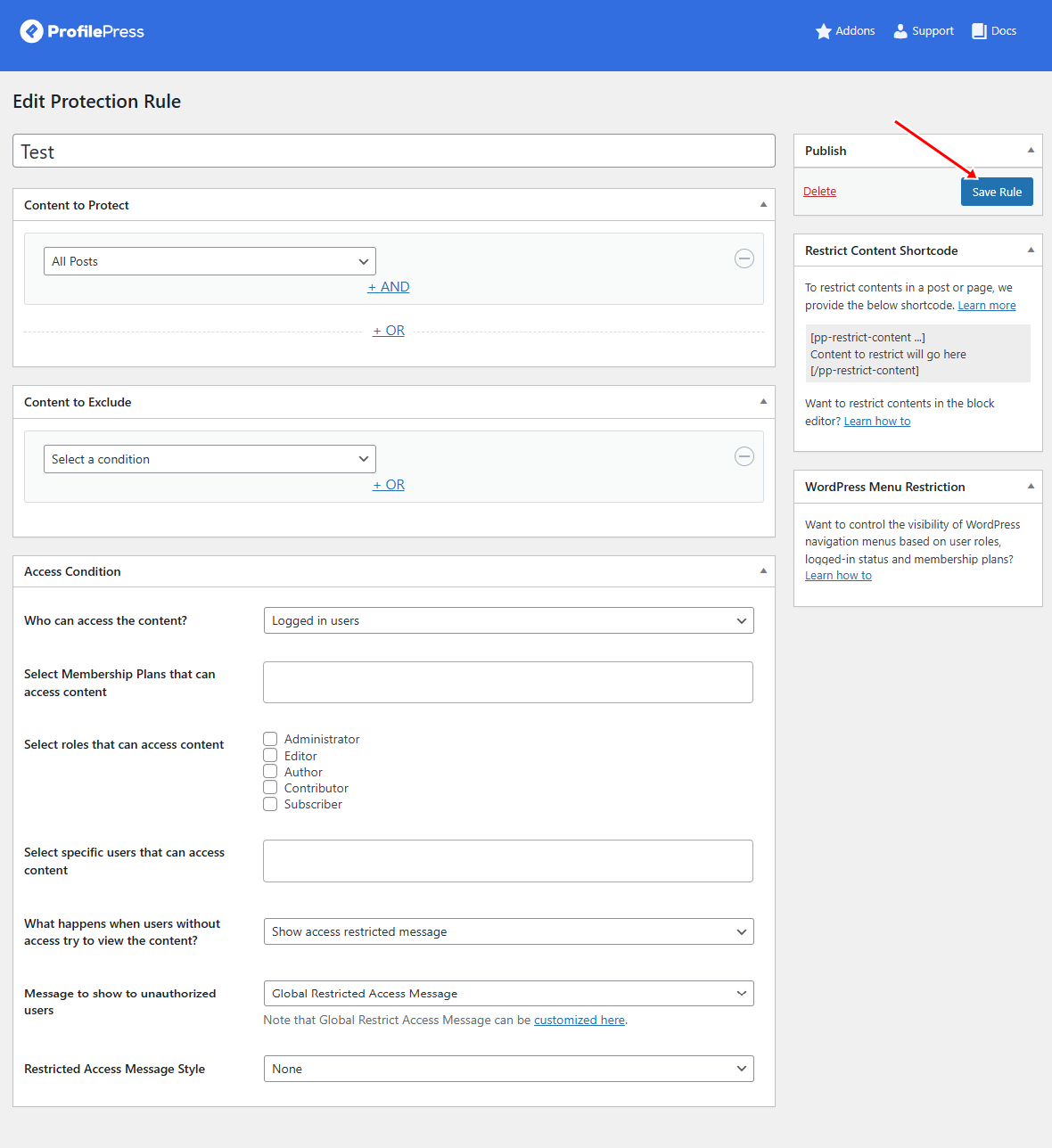 Setting Up ProfilePress Content Protection Rules